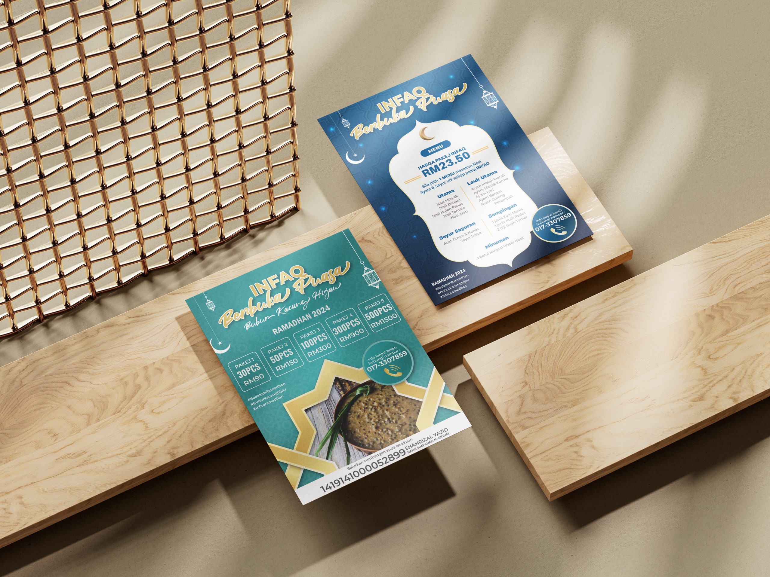 A visual catalogue designed to present infaq iftar packages in a clear and structured format. The posters focus on explaining the offering and its purpose without excessive promotional elements, ensuring the message remains sincere and easy to understand.